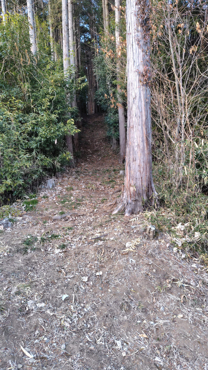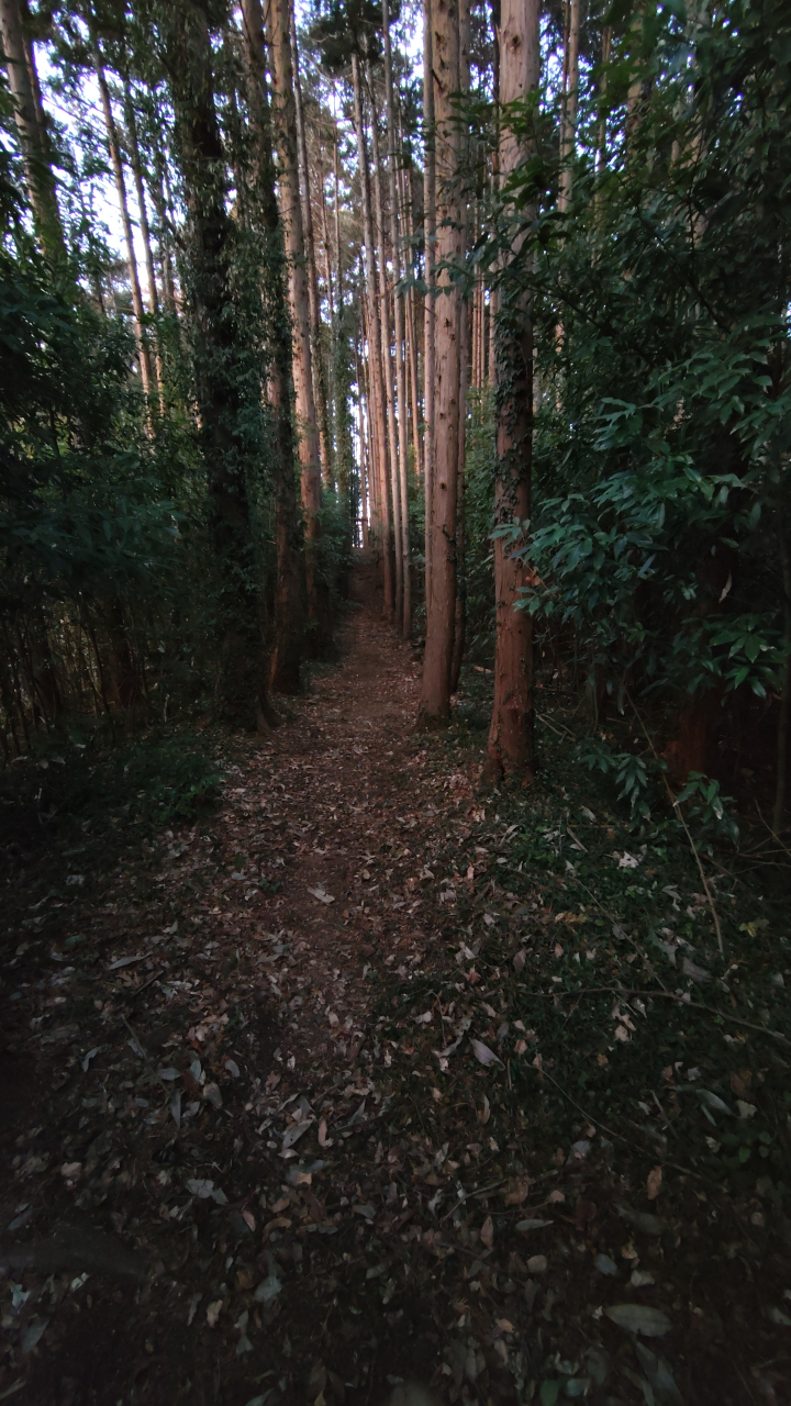 途中、両側が杉だけになり、きっちり一人分くらいの幅の道ができていた。