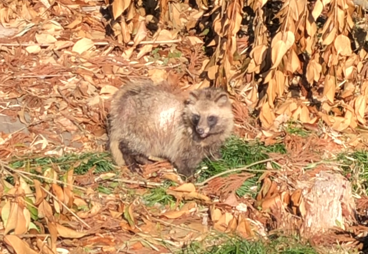 自然と動物裏庭で作業をしていたら、タヌキがとことこ歩いてきて何やらごそごそしています。