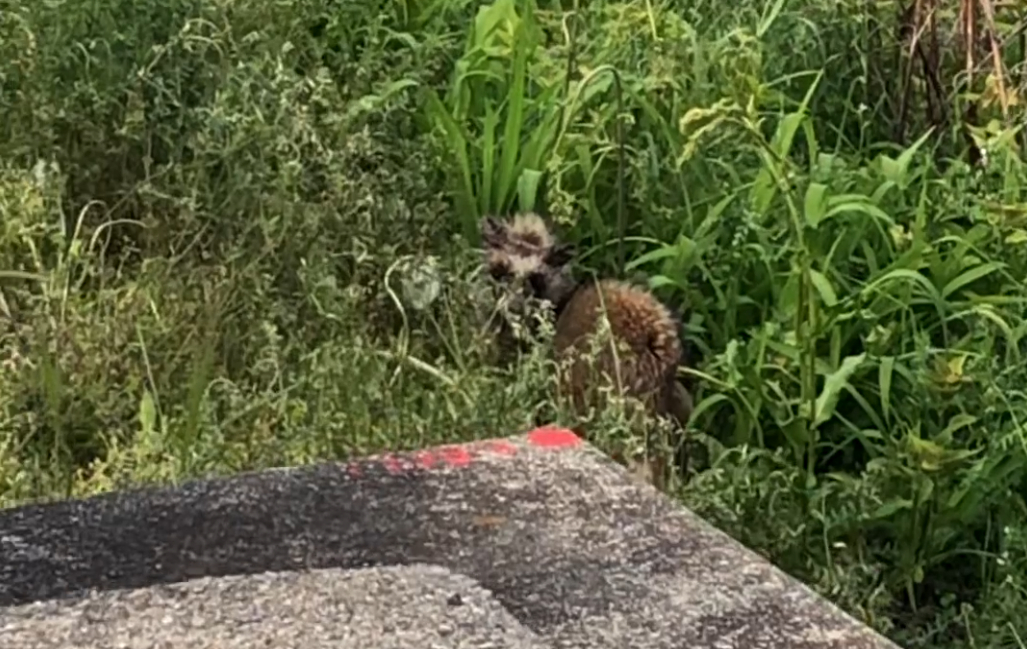 タヌキ必殺技「かくれたつもり」 自然と動物 2026.04.19 散歩していたら、タヌキに出くわした。 こちらに気づいてタヌキは逃げ出したが・・・ お、遅すぎる! タヌキの「かくれたつもり」が可笑しくて可愛かった。