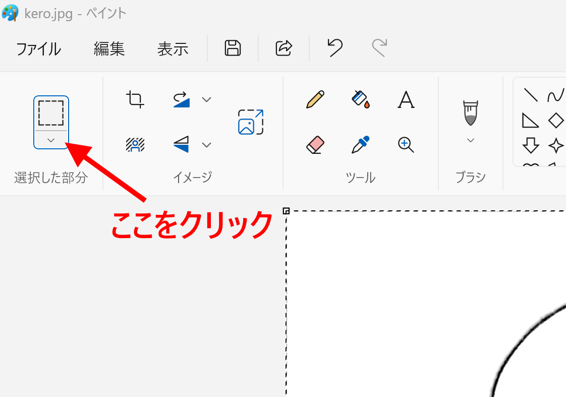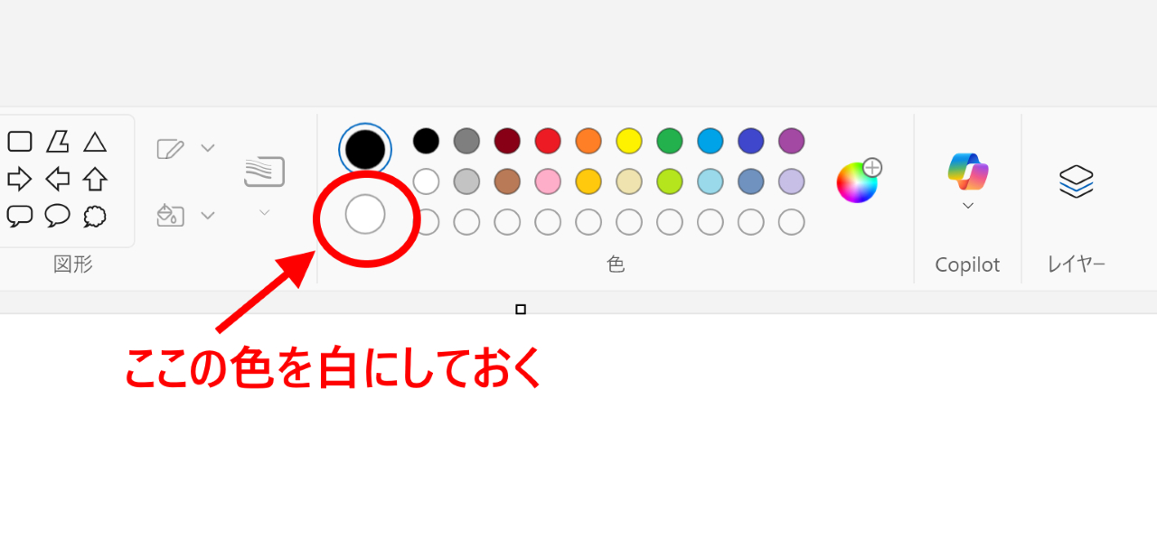 5.色選択の色2の方を白にしておきます。(たぶんペイント起動時の設定のままで大丈夫です)
