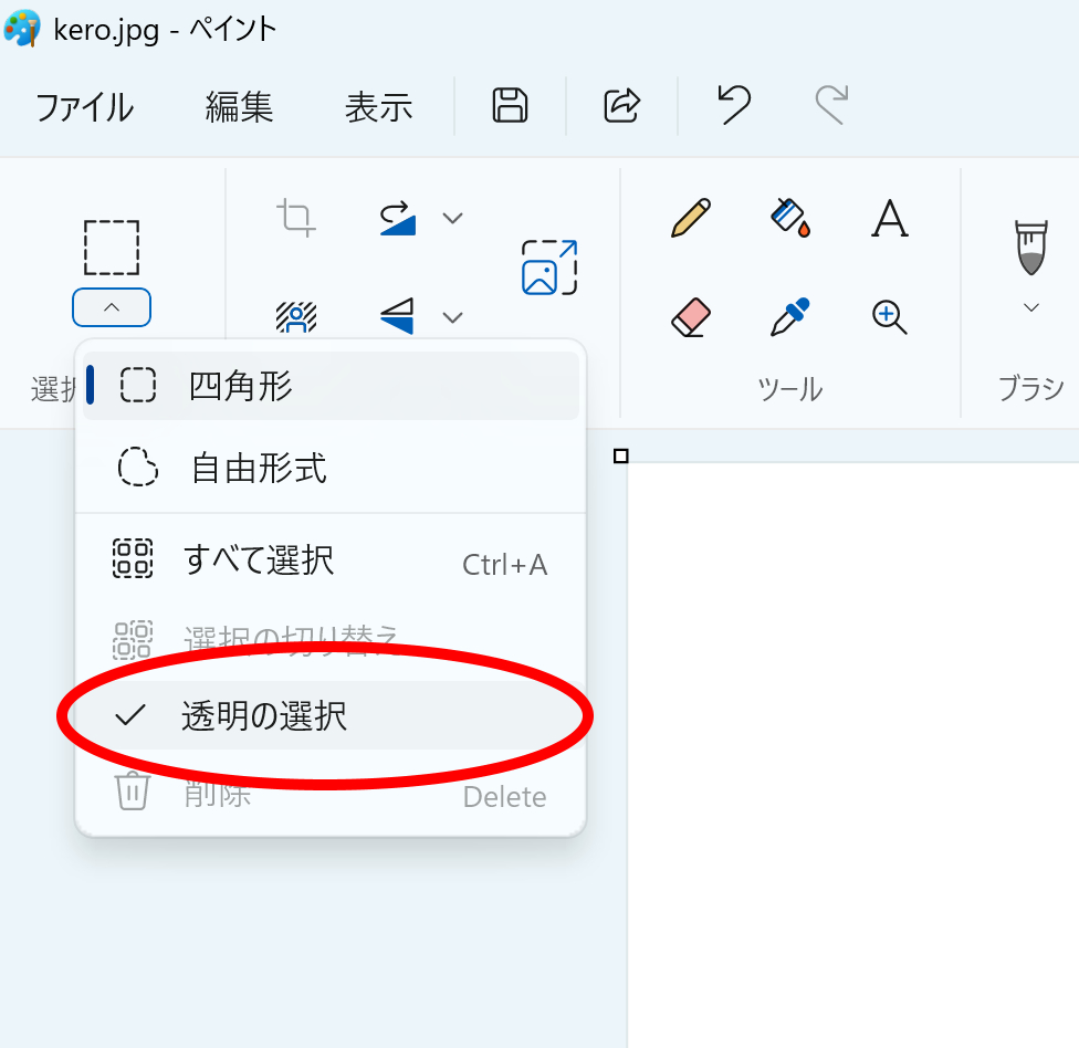 ちなみにペイントにすでにある機能で「背景の削除」というボタンがあるのですが、これを使うと中途半端に背景が透明化されてしまいかなり使えません。