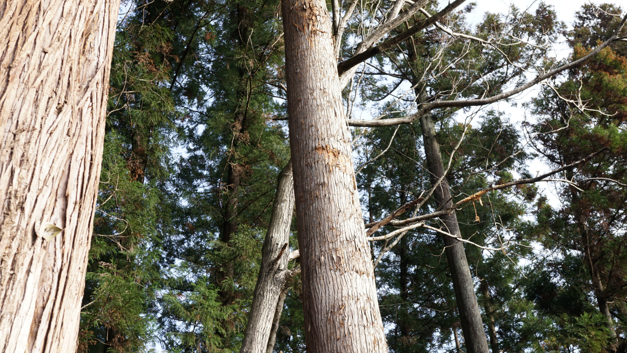 2~3年前、自宅裏の杉の木の皮があちこち剥かれていることに気づいた。