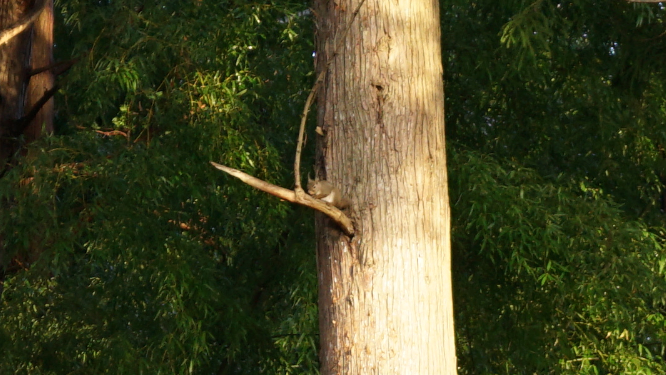 ちなみに杉の木の枝の根元にリスがいるのだがいかんせん距離が遠い。
