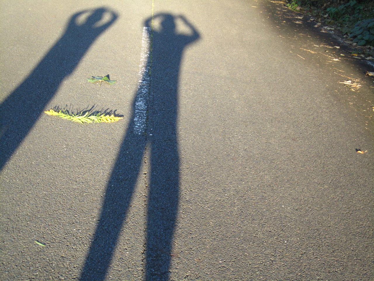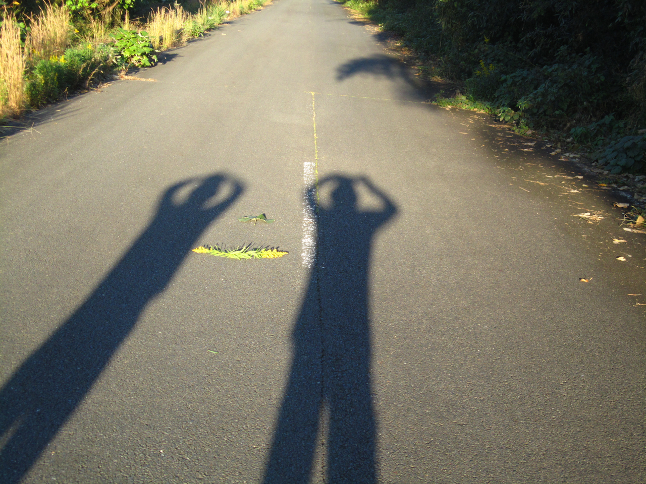 西日の影顔 自然と動物Canon IXY 10Sで撮影 ISO 200 F5 1/125秒 2025.10.30 西日に背を受け散歩していたら道に目があった。 よく見ると鼻と口もあった。 かわいい子供がこっちを見ていた。
