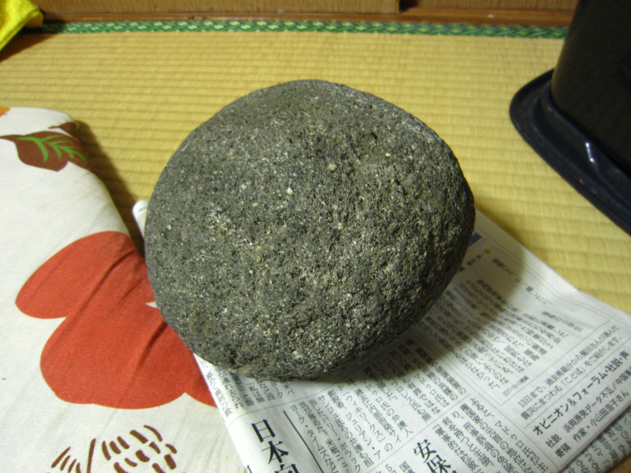 形がいいから「何かに使えるかも」と以前河原で拾ってきた丸石。