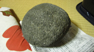 形がいいから「何かに使えるかも」と以前河原で拾ってきた丸石。